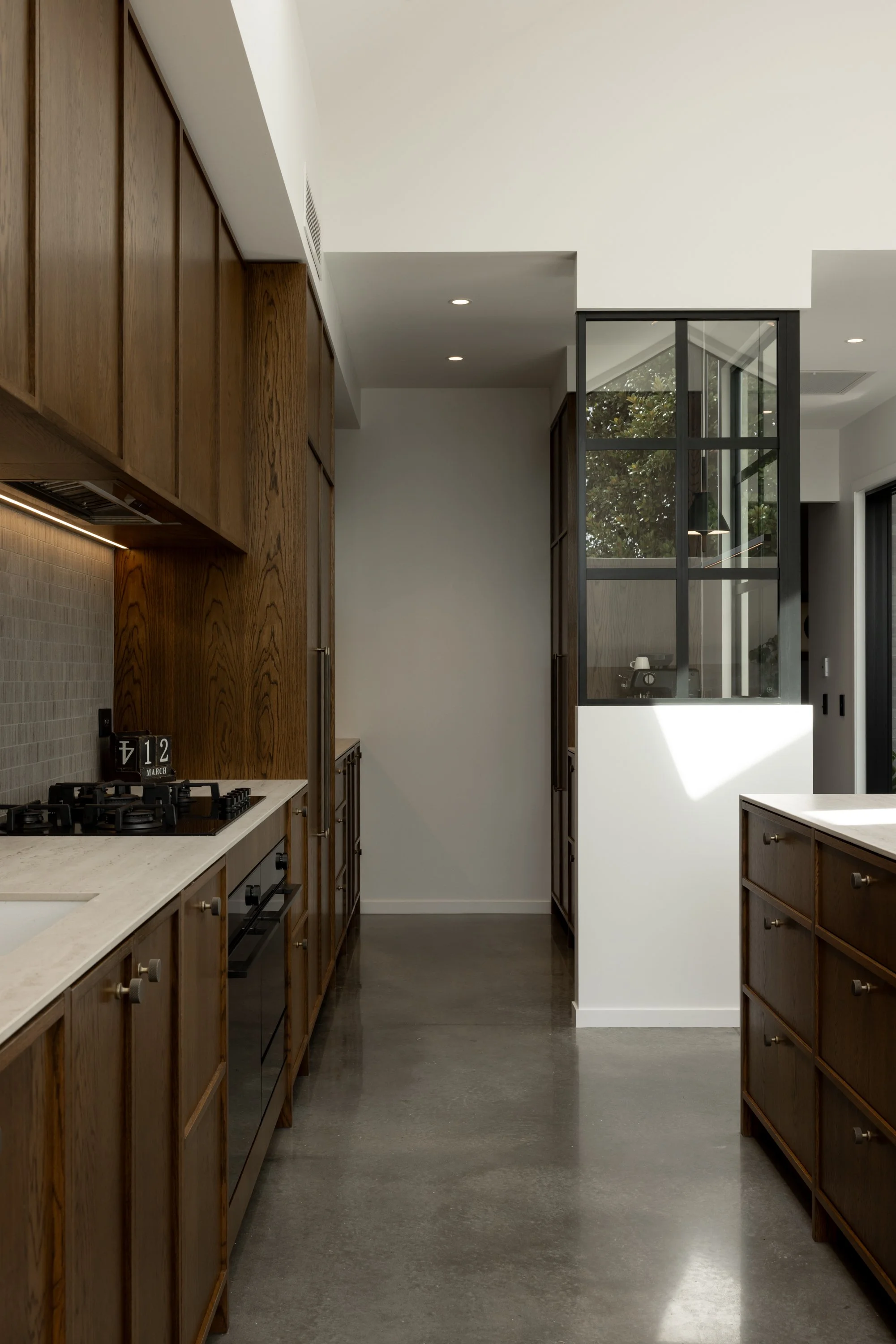 Spatial planning was integral to the outcome, with open-plan living areas designed to balance connection and retreat. The kitchen anchors the home as a sculptural and functional centrepiece, seamlessly linking to dining and outdoor spaces to support effortless entertaining.