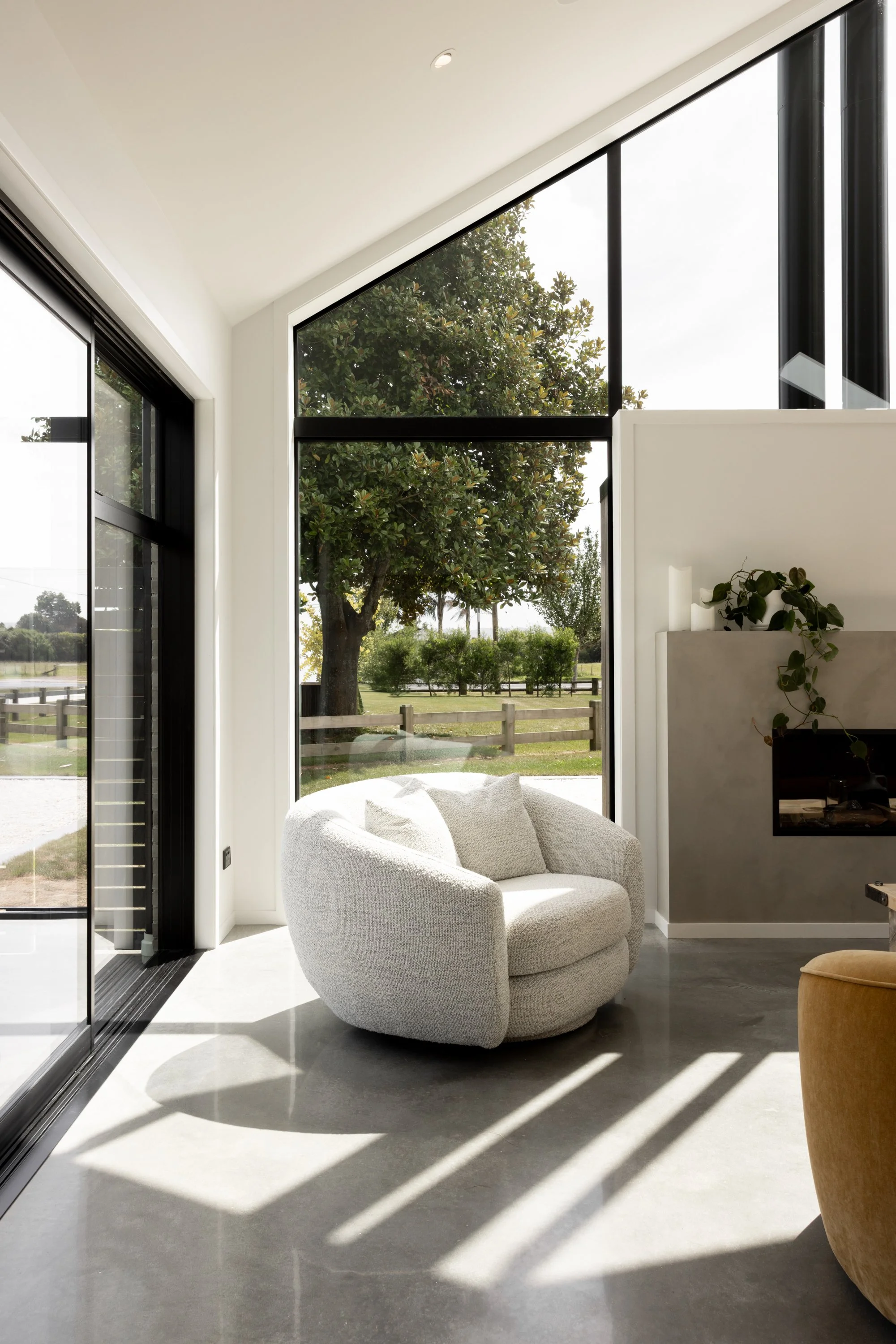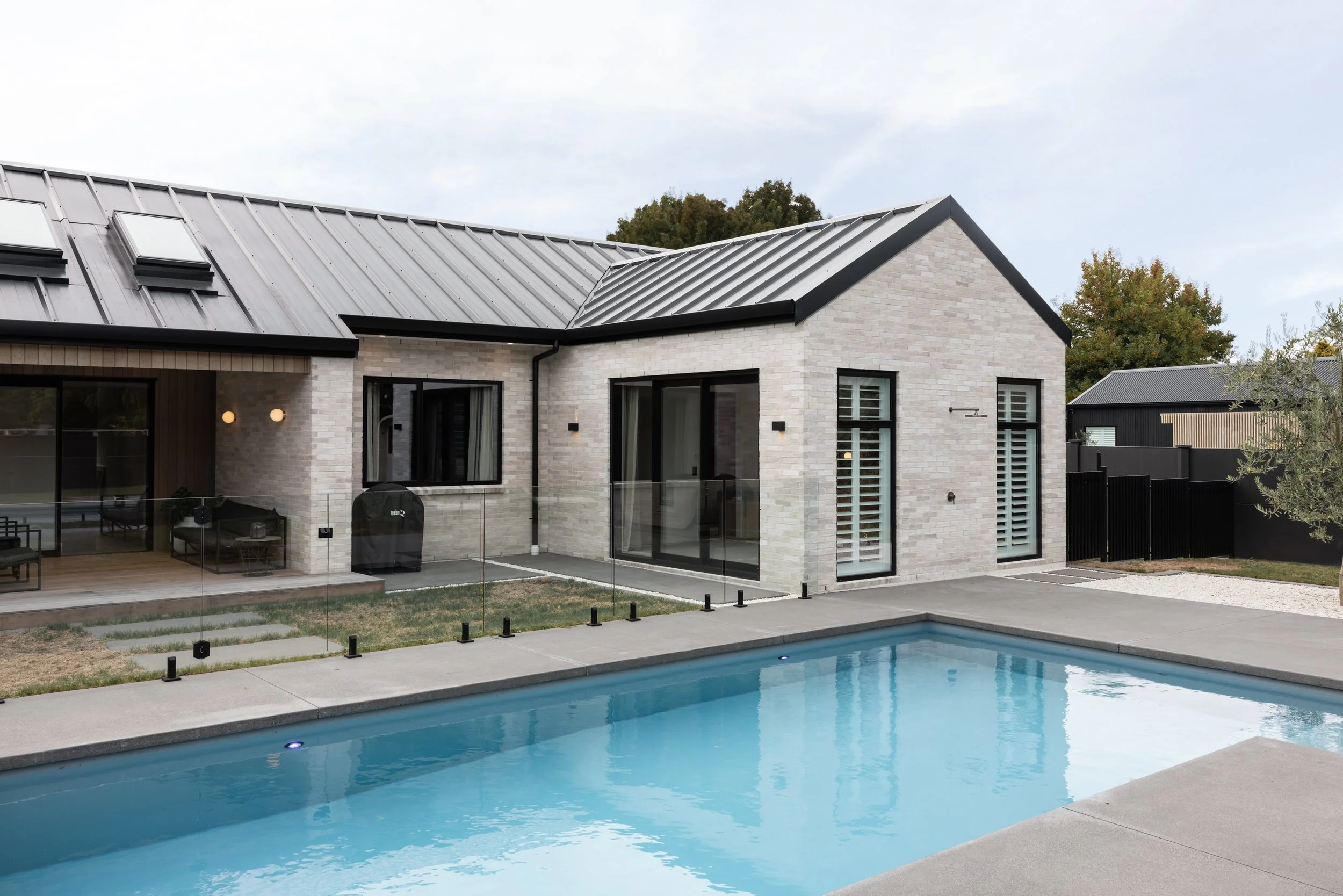 Set within Cambridge, Waikato - our Thornton Road new build responds to both its semi-rural surroundings and the relaxed lifestyle of its owners. The brief called for a home that felt grounded and enduring, while subtly weaving together a clean, contemporary language with softened Mediterranean influences. A restrained, almost brutalist approach underpins the design, allowing solid forms and honest materials to define the home’s character.