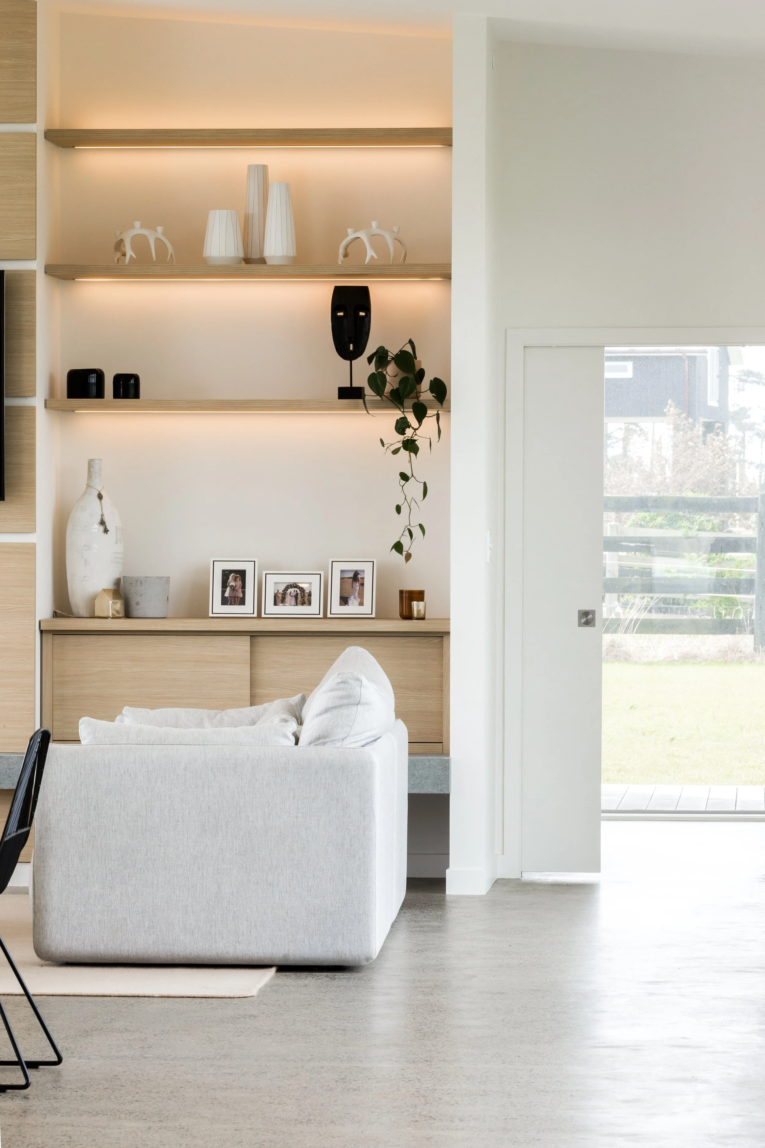 In collaboration with the construction company – Build7 – and the client, Designer Sophia Cole was engaged to design everything from interior & exterior colour palettes, kitchen, bathroom & living spaces, a lighting design, and the fitting & hardware selection throughout the interior.