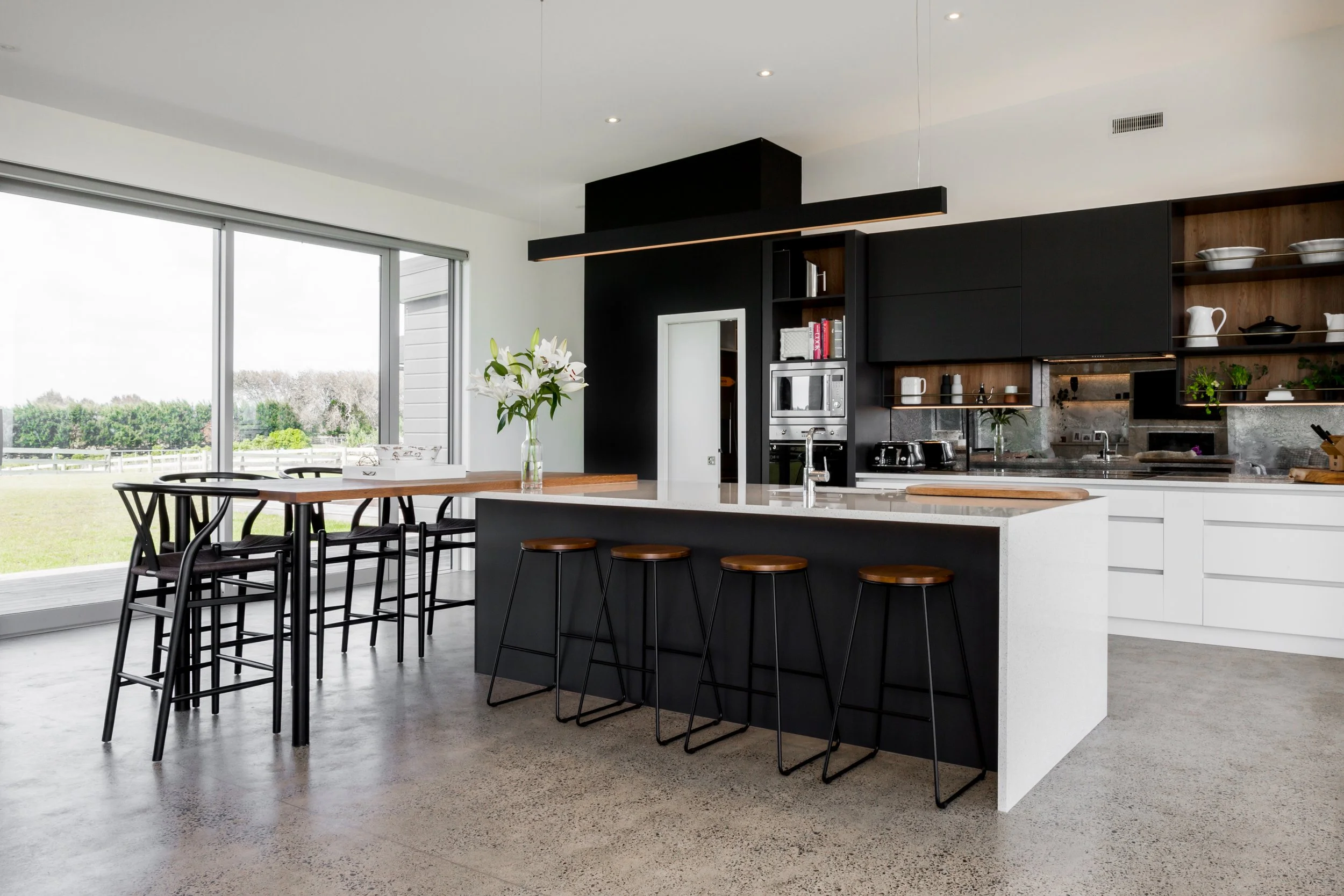 The result is a visually stunning home that absorbs the views and outdoor living, whilst reflecting the client’s laid-back personality.