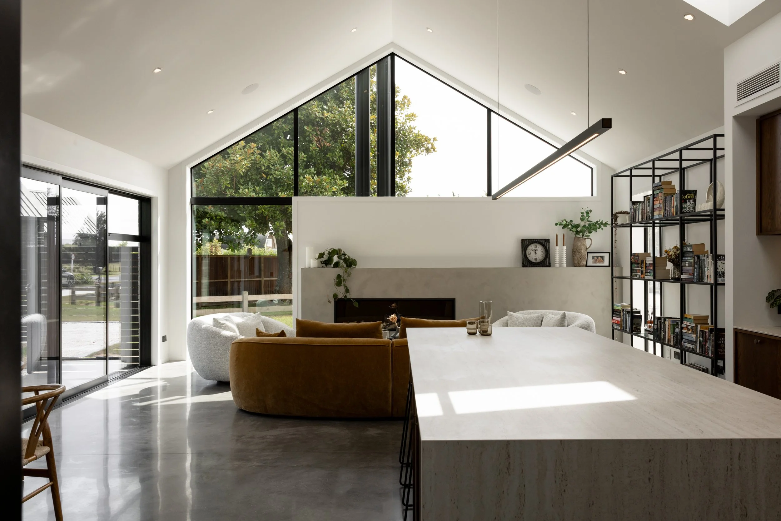 Spatial planning was integral to the outcome, with open-plan living areas designed to balance connection and retreat. The kitchen anchors the home as a sculptural and functional centrepiece, seamlessly linking to dining and outdoor spaces to support effortless entertaining.